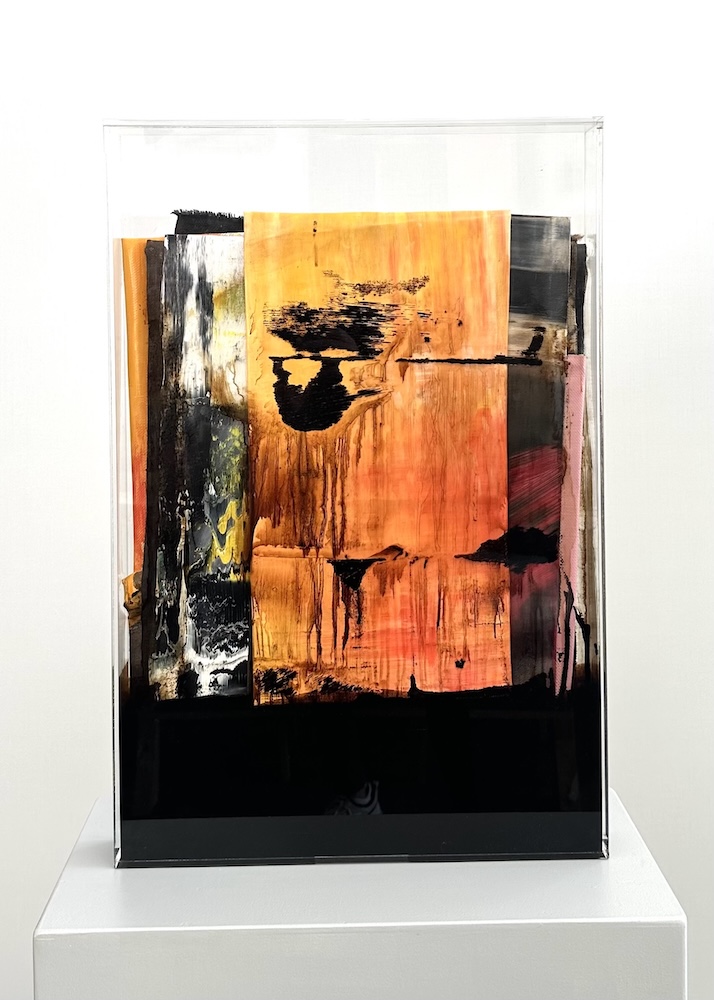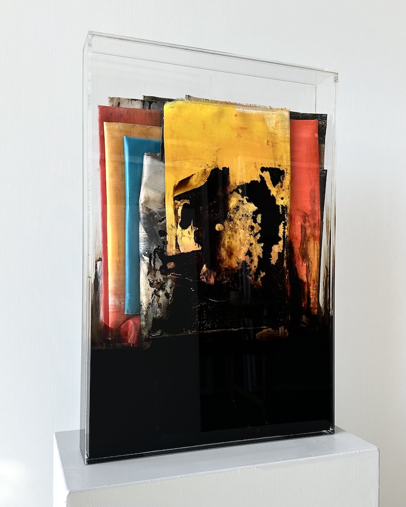 Öl auf Leinen und Bitumen im Plexiglasbox - 52,5 x 39,6 x 5 cm - 2024